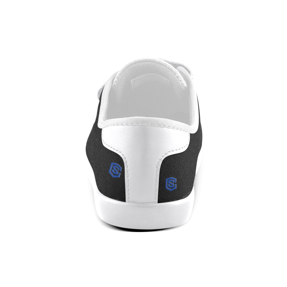 BLACK CANVAS KID SHOES blue logo Velcro Canvas Kid's Shoes (Model 008)