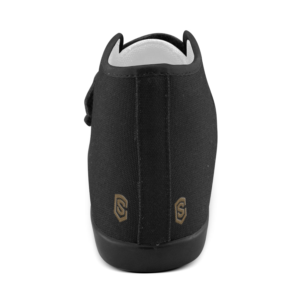 BLACK CANVAS KID SHOES brown logo Velcro High Top Canvas Kid's Shoes (Model 015)