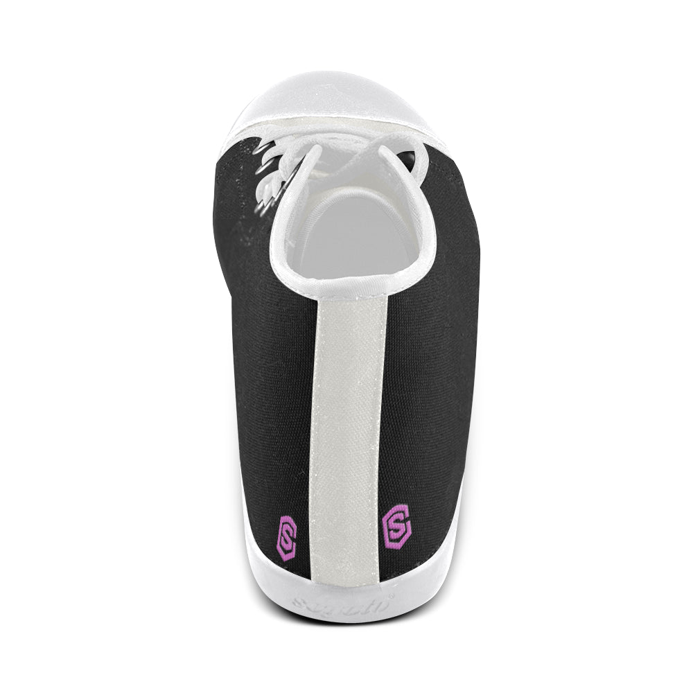BLACK CANVAS KID SHOES pink logo High Top Canvas Kid's Shoes (Model 002)