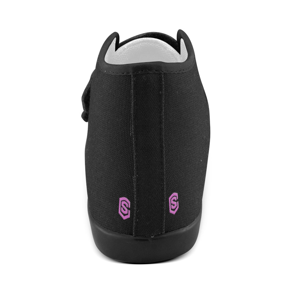BLACK CANVAS KID SHOES pink logo Velcro High Top Canvas Kid's Shoes (Model 015)