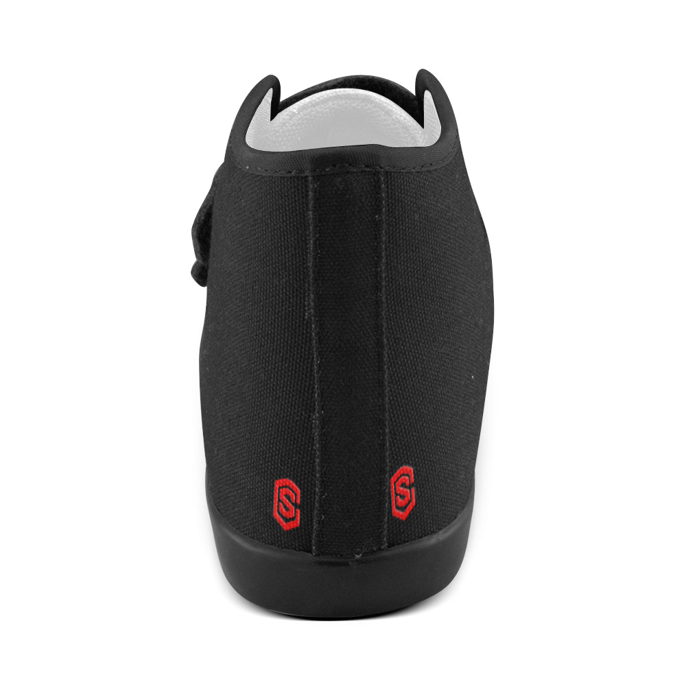 BLACK CANVAS KID SHOES red logo Velcro High Top Canvas Kid's Shoes (Model 015)