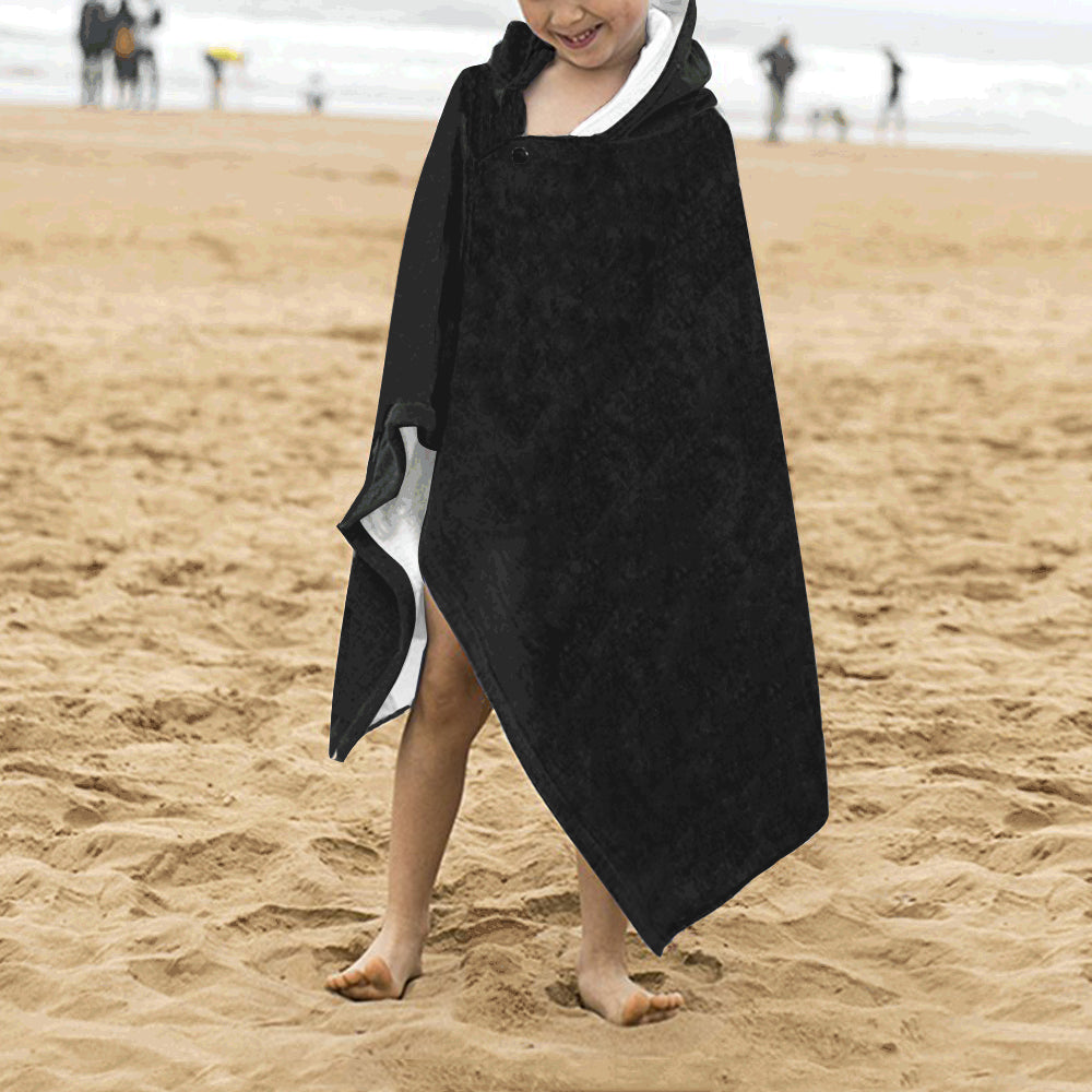 Black Kids' Hooded Bath Towels with Silver Logo Kids' Hooded Bath Towels
