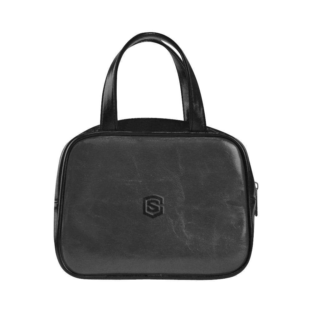 BLACK LEATHER TOP HANDLE HANDBAG black logo Leather Top Handle Handbag (Model 1662)