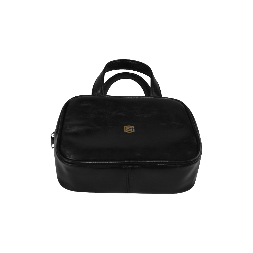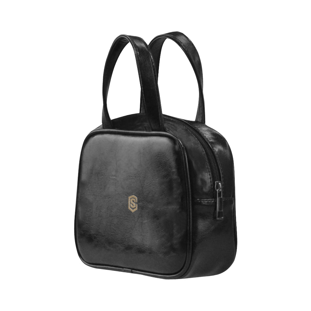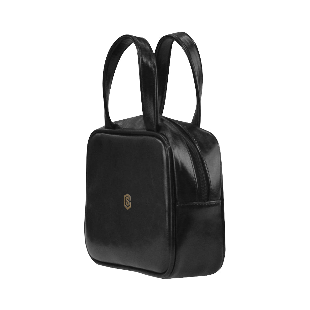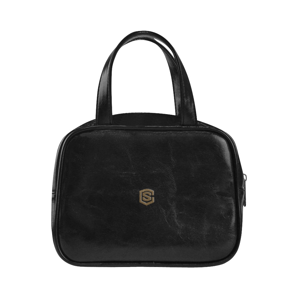 BLACK LEATHER TOP HANDLE HANDBAG brown logo Leather Top Handle Handbag (Model 1662)
