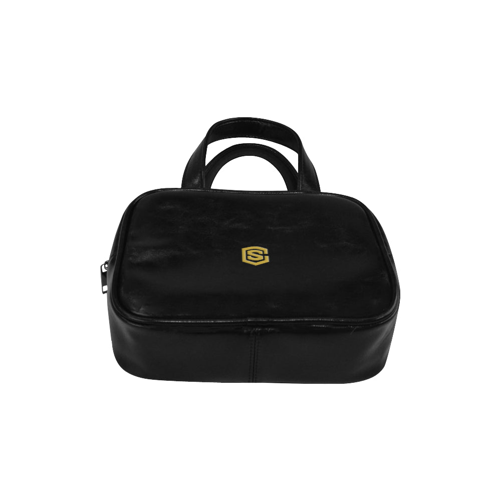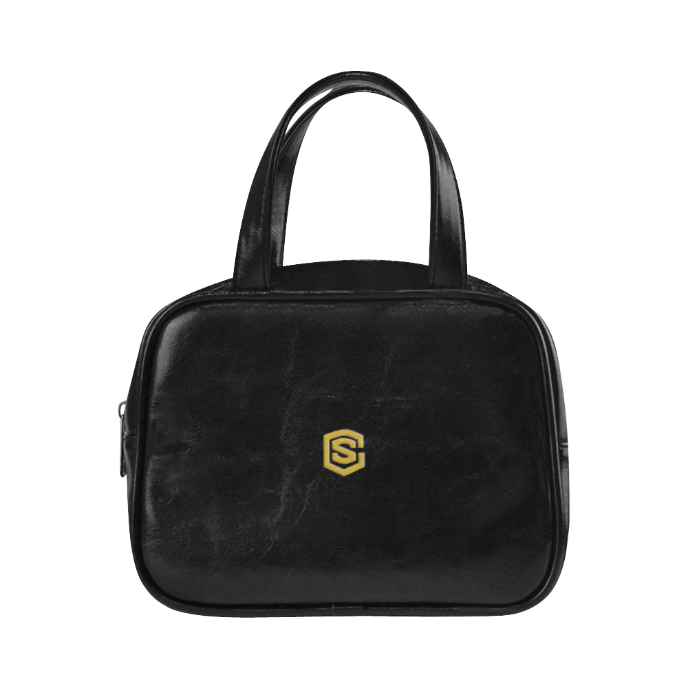 BLACK LEATHER TOP HANDLE HANDBAG gold logo Leather Top Handle Handbag (Model 1662)