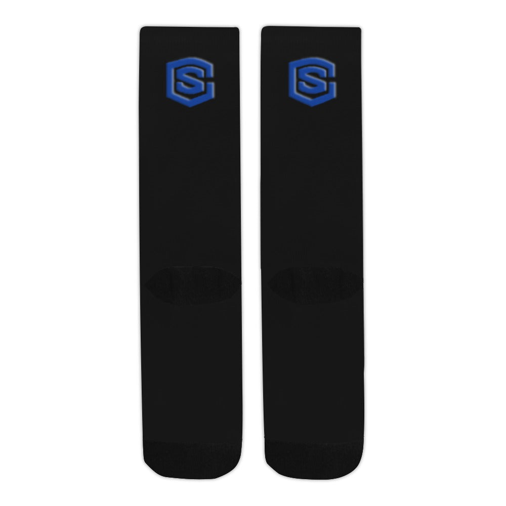 Black Sublimated Crew Socks (Made In USA) with Blue Logo Sublimated Crew Socks (Made In USA)