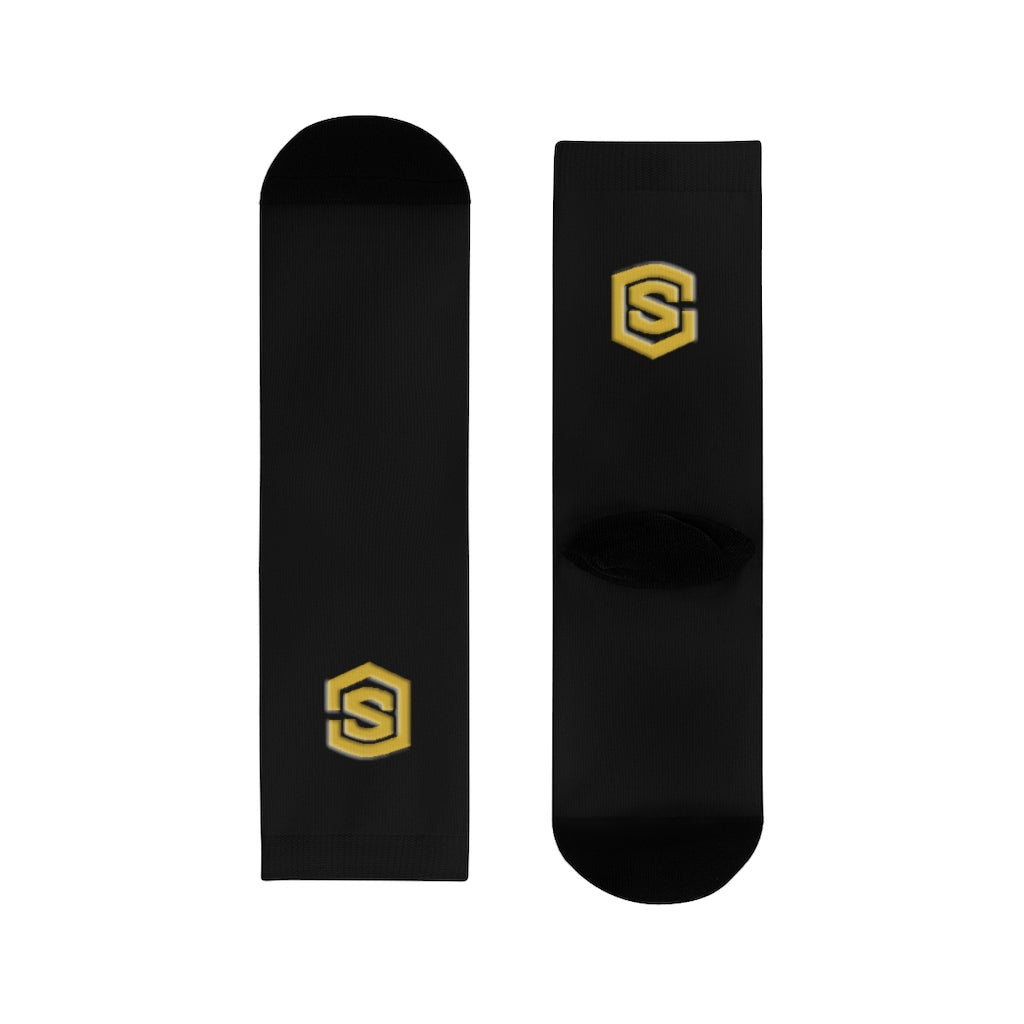 Black Sublimation Crew Socks (EU) Gold Logo