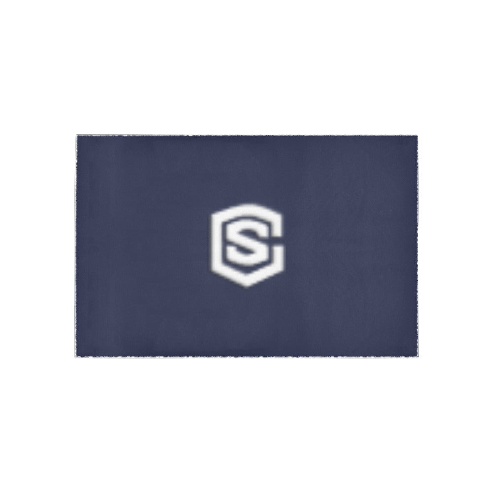 Blue Area Rug White Logo Area Rug 5' x 3.2'