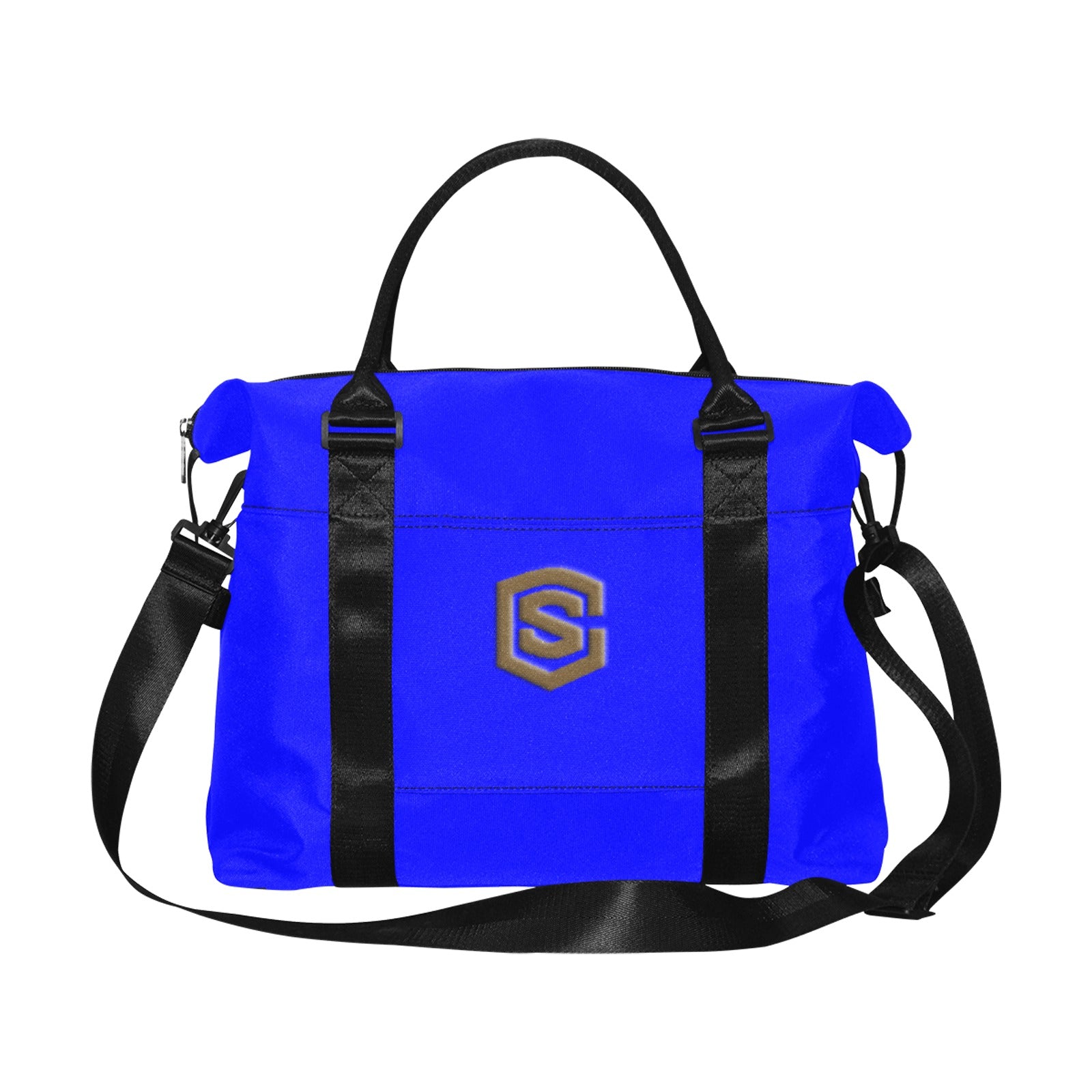 Blue Large Capacity Duffle Bag With Brown Logo Large Capacity Duffle Bag(Model1715)