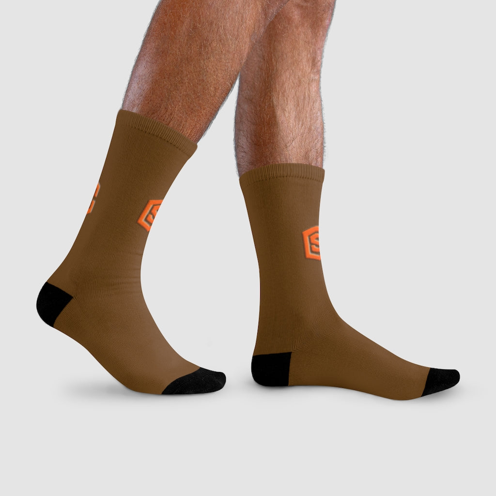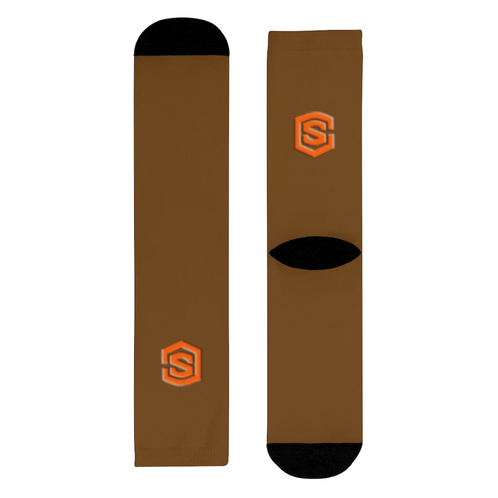 Brown Sublimation Crew Socks (EU) Orange Logo