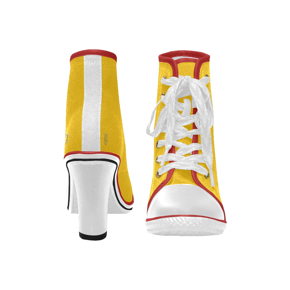 gold logo Women's Lace Up Chunky Heel Ankle Booties (Model 054)