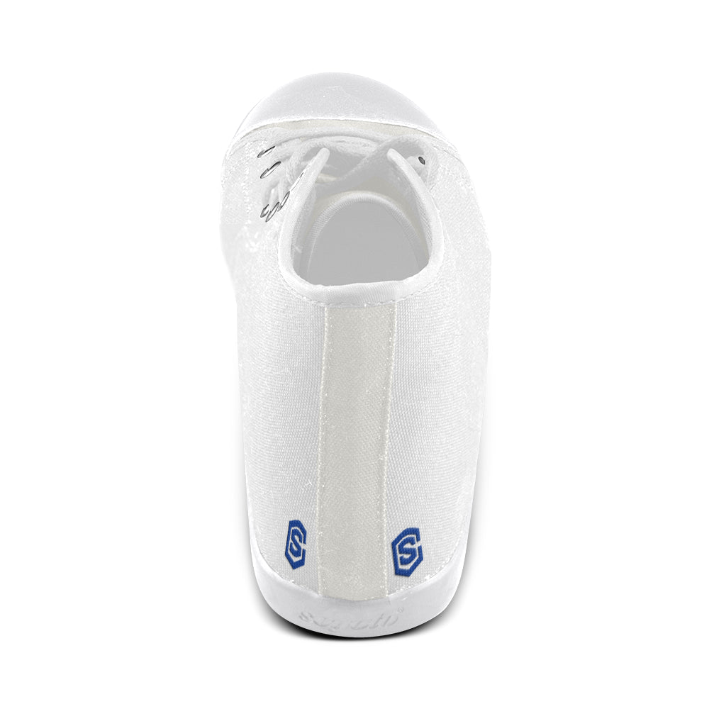 GRAY CANVAS KID SHOES blue logo High Top Canvas Kid's Shoes (Model 002)