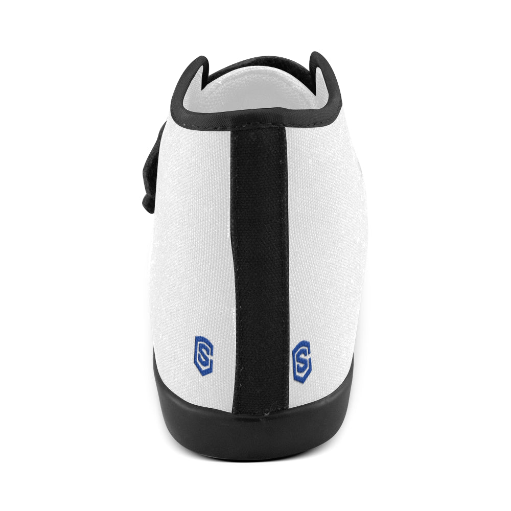 GRAY CANVAS KID SHOES blue logo Velcro High Top Canvas Kid's Shoes (Model 015)