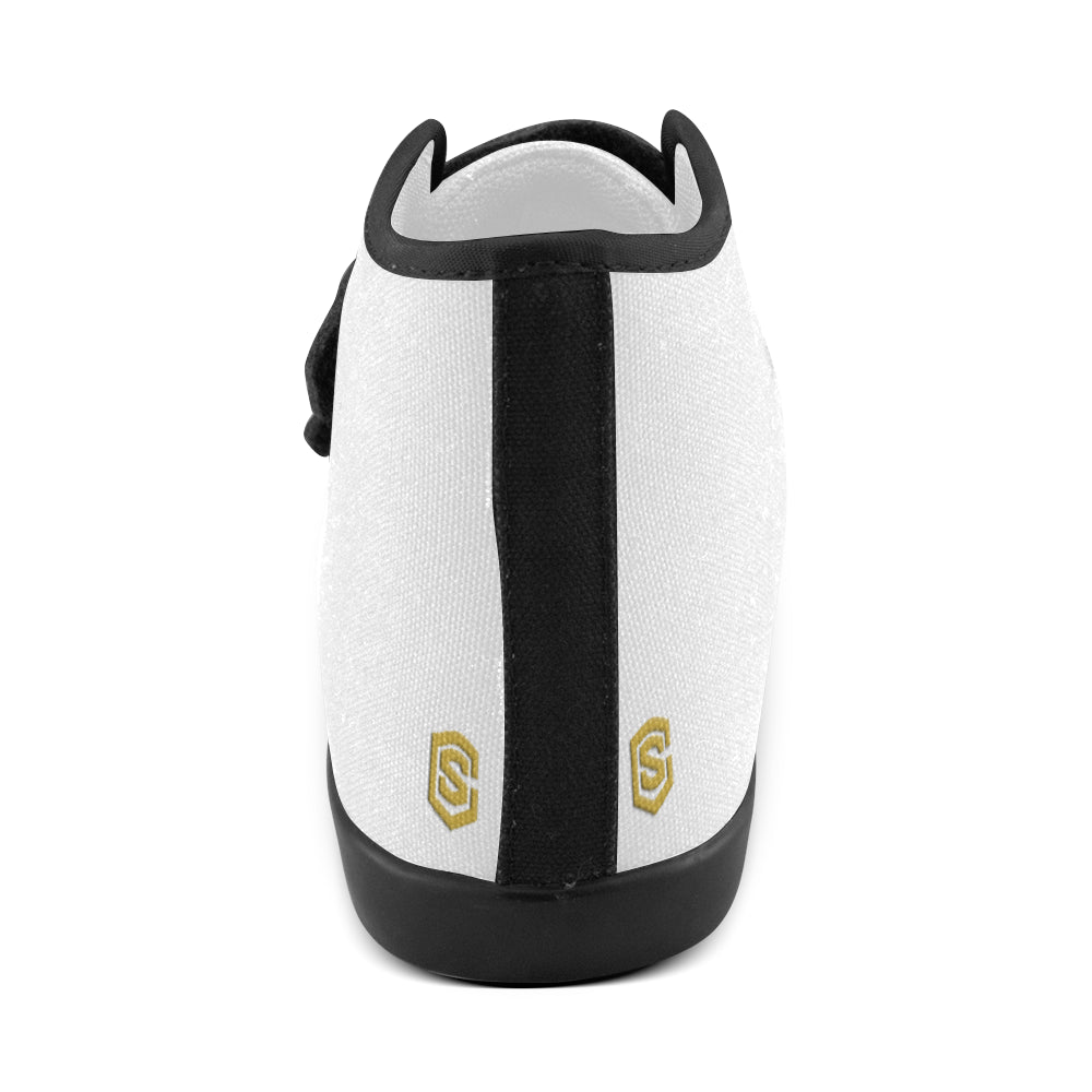 GRAY CANVAS KID SHOES gold logo Velcro High Top Canvas Kid's Shoes (Model 015)