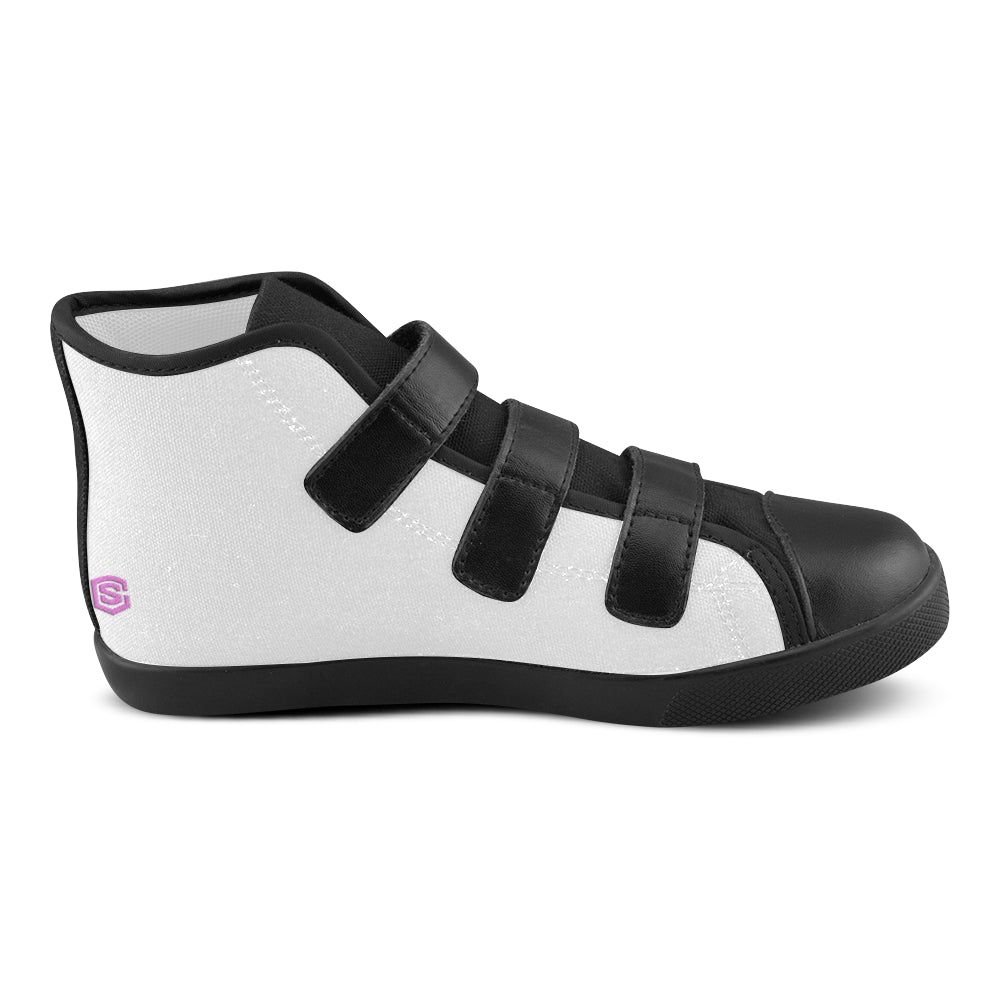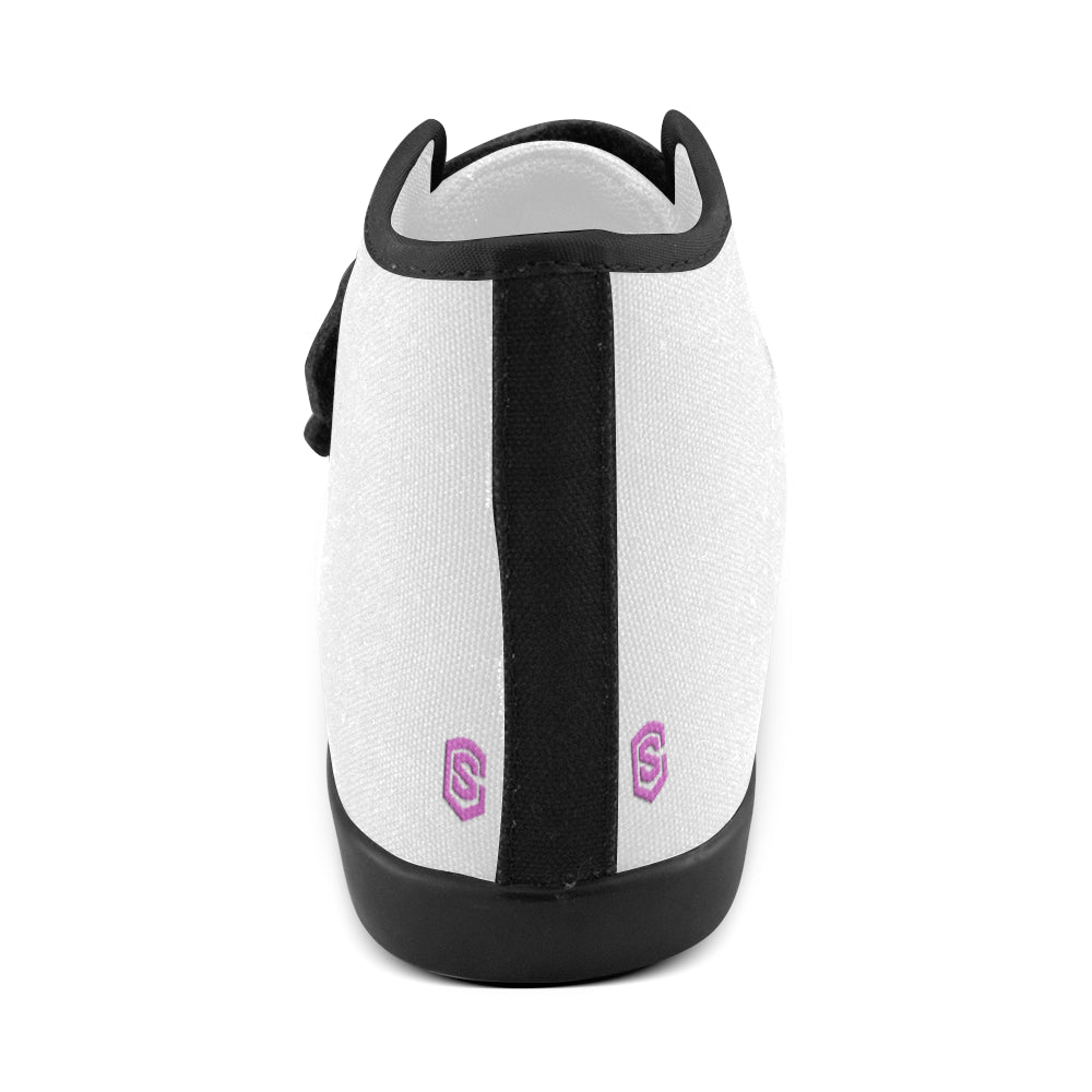 GRAY CANVAS KID SHOES pink logo Velcro High Top Canvas Kid's Shoes (Model 015)