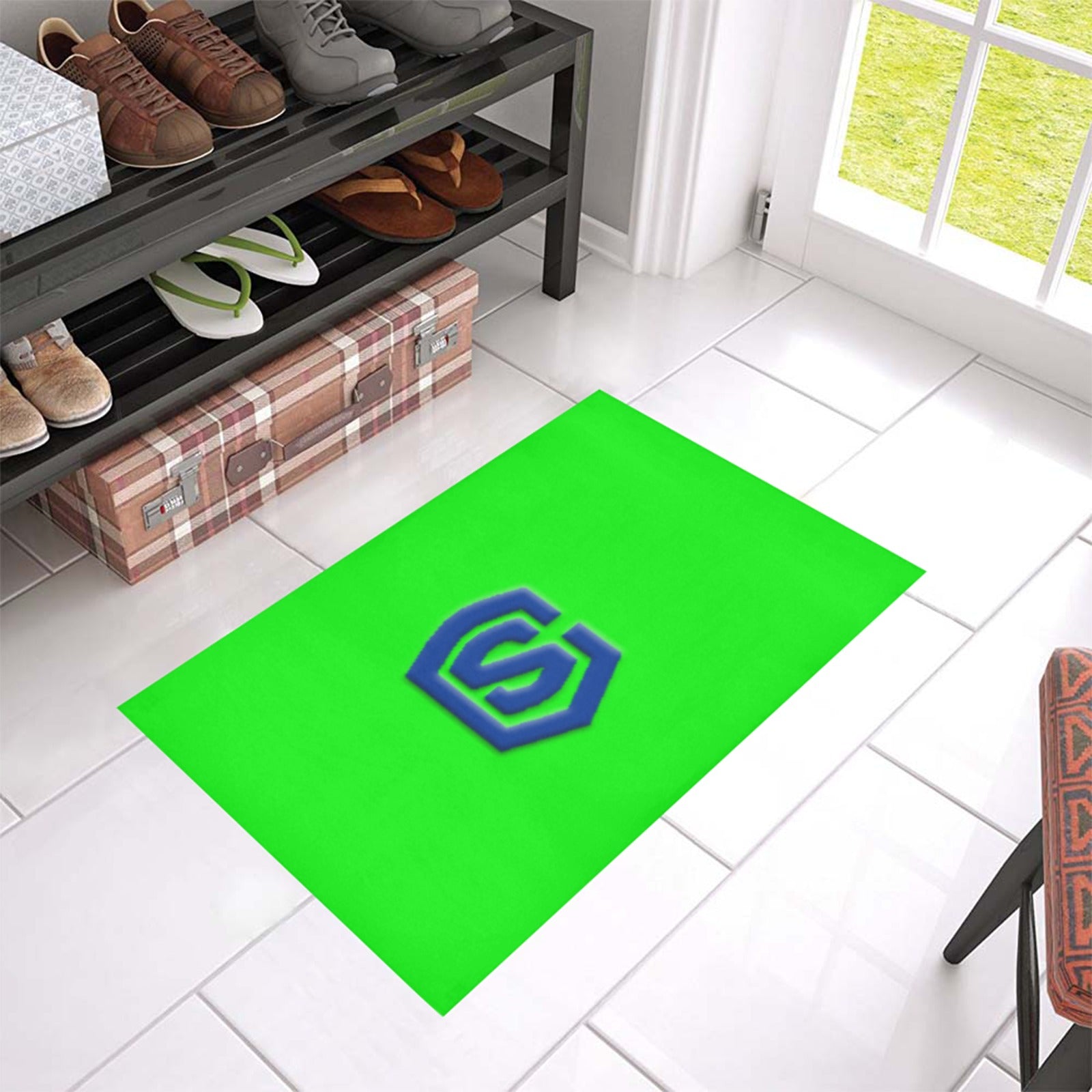 Green Door Mat with Blue Logo Doormat 24" x 16" (Sponge Material)