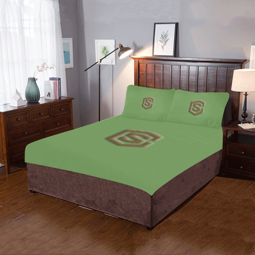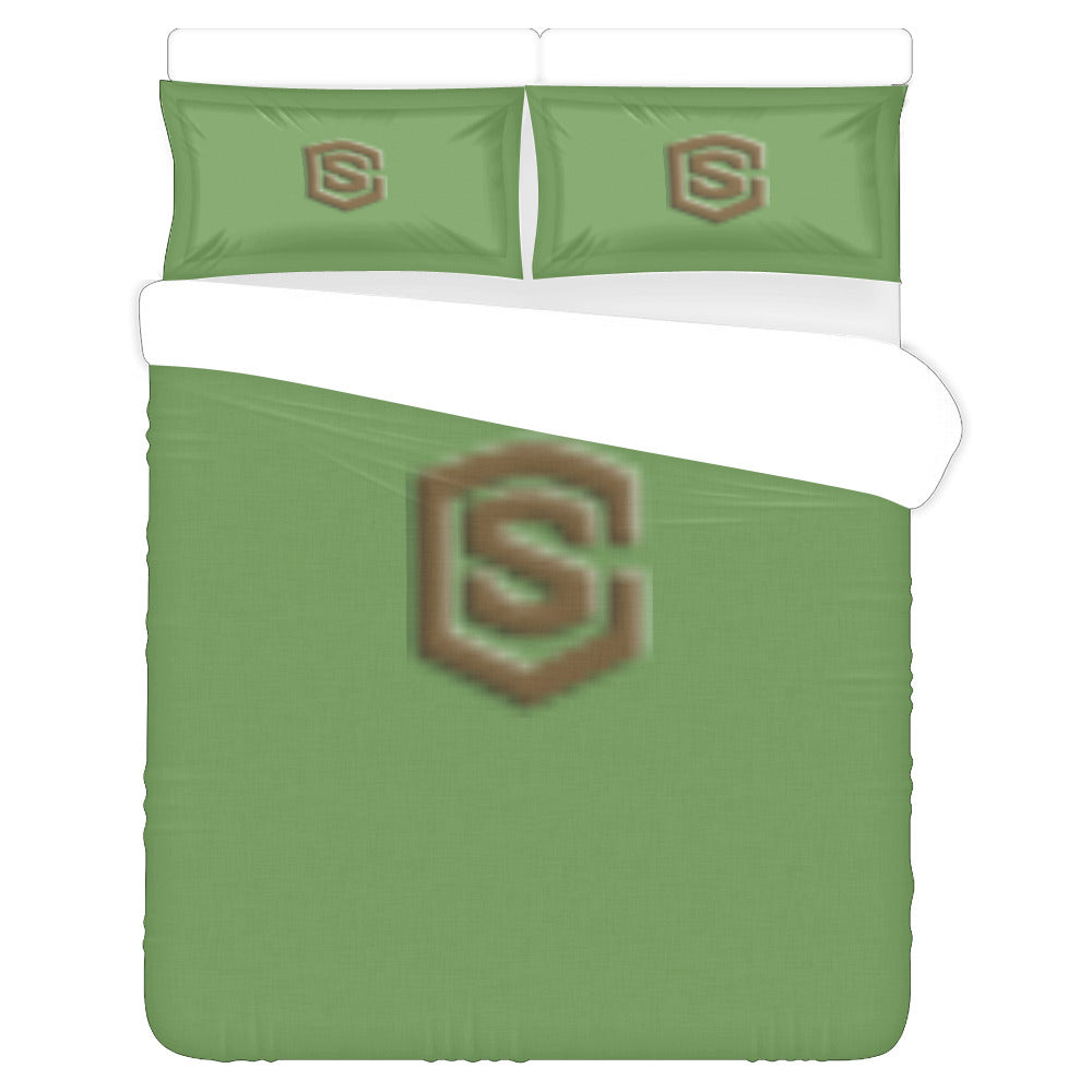 Green Duvet Cover Brown Logo 3-Piece Bedding Set (1 Duvet Cover 86"x70"; 2 Pillowcases 20"x30")(One Side)