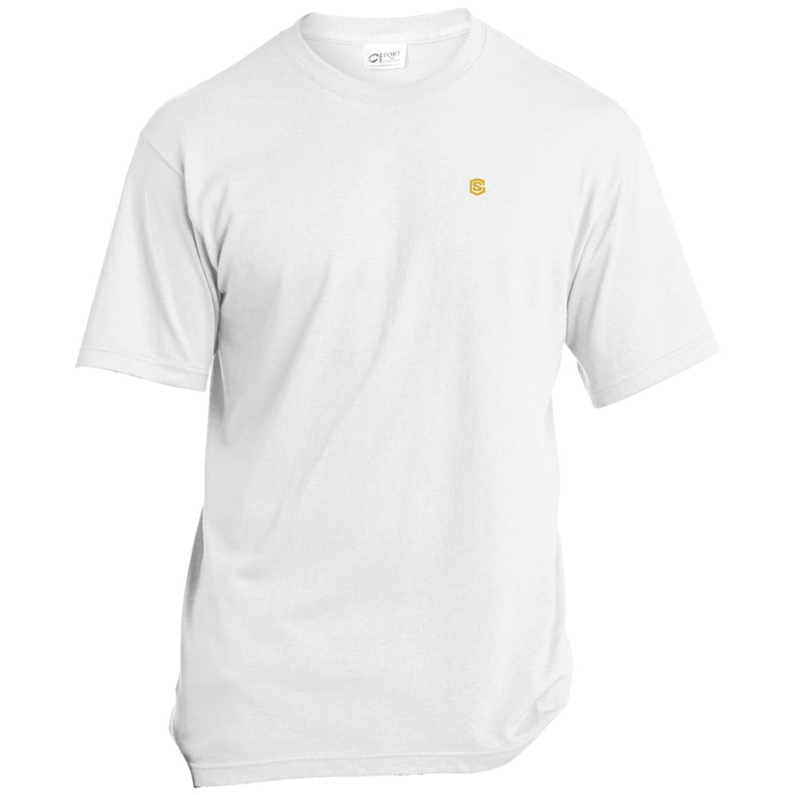 - 5.5-ounce, 100% cotton; Double-needle hem