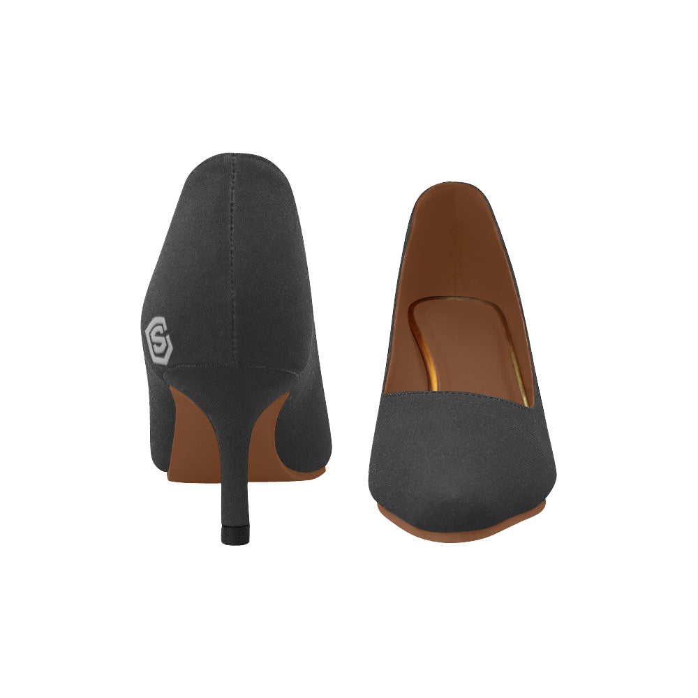 MAROON Women's Pointed Toe Low Heel Pumps silver logo Women's Pointed Toe Low Heel Pumps (Model 053)