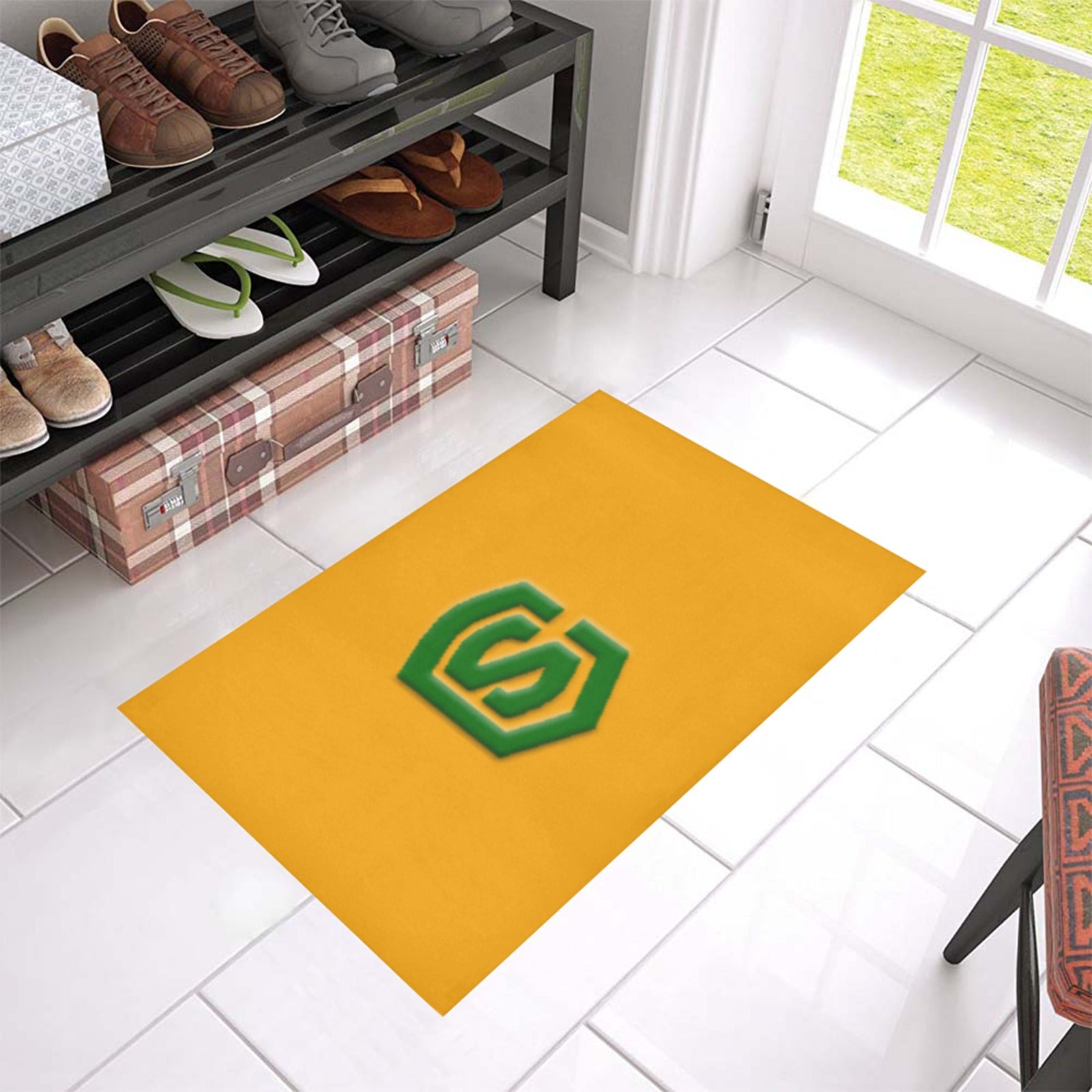 Orange Door Mat with Green Logo Doormat 24" x 16" (Sponge Material)
