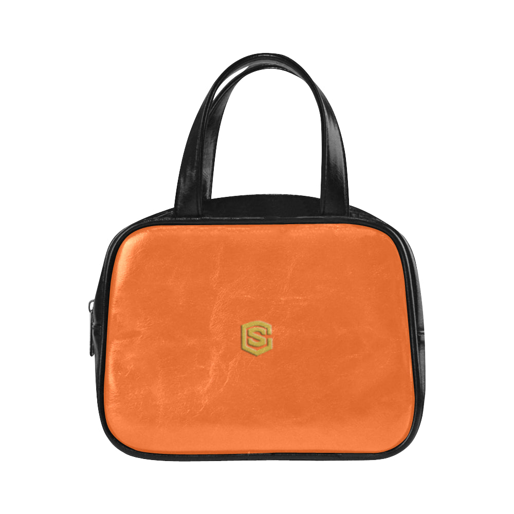ORANGE LEATHER TOP HANDLE HANDBAG gold logo Leather Top Handle Handbag (Model 1662)