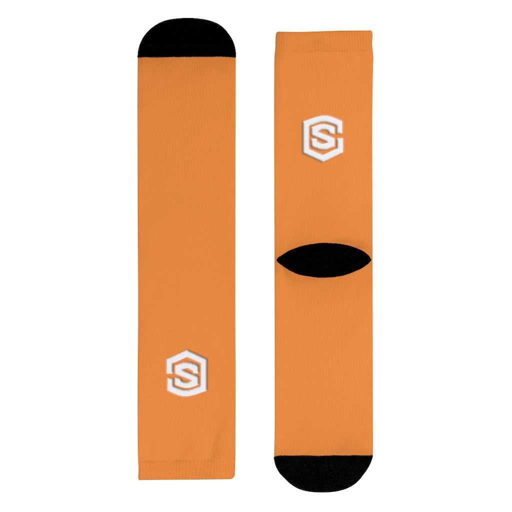 These sublimation crew socks take your designs to the next level. They are made of 70% polyester, 25% cotton, 5% elastane/spandex for style and easy customization. Their polyester exterior and cotton interior are added for both superb comfort and printability. Sublimation socks are known for their vibrant sublimation colors and have a great amount of stretch and durable print quality.