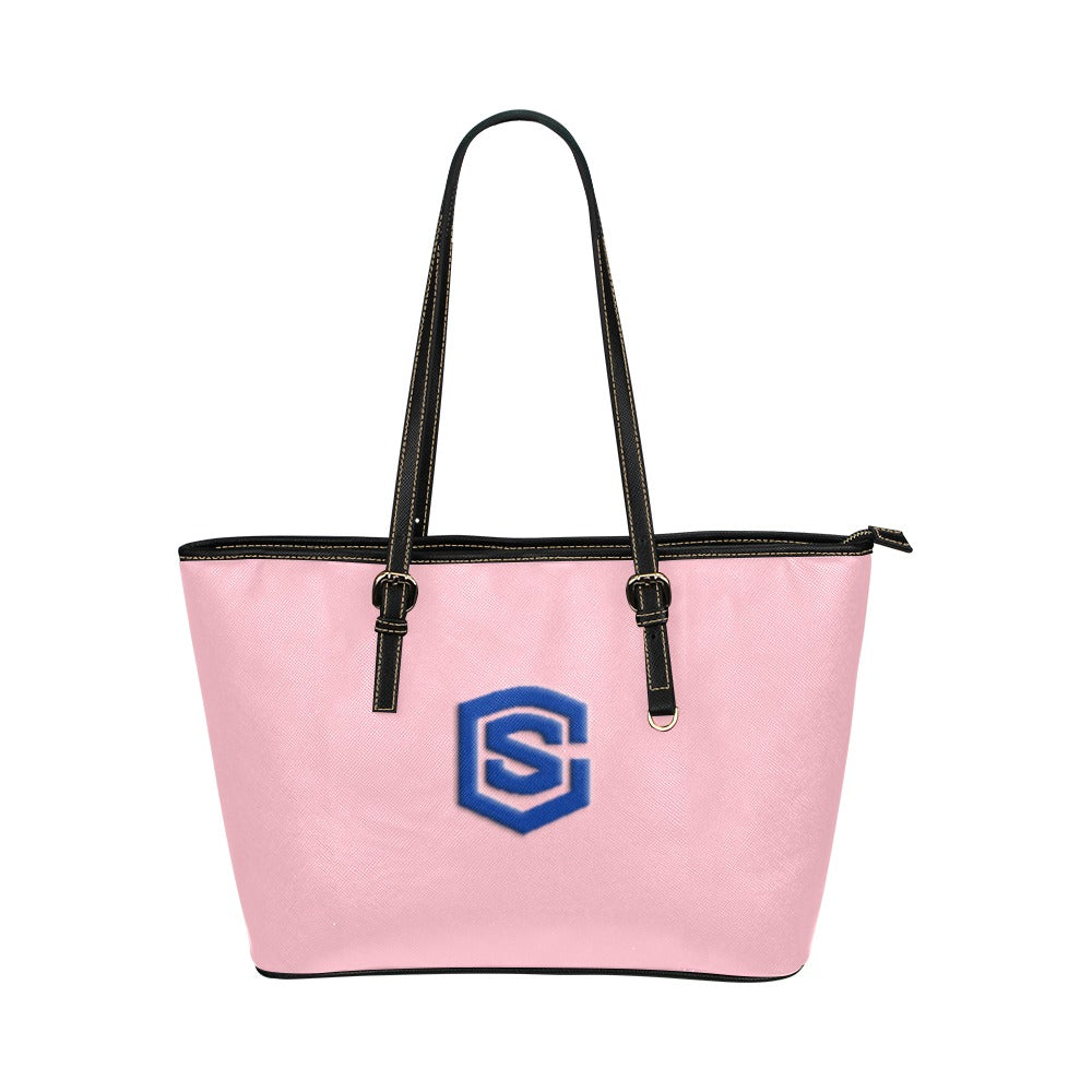 PINK Leather Tote Bag WITH BLUE LOGO Leather Tote Bag (Model 1651) (Big)