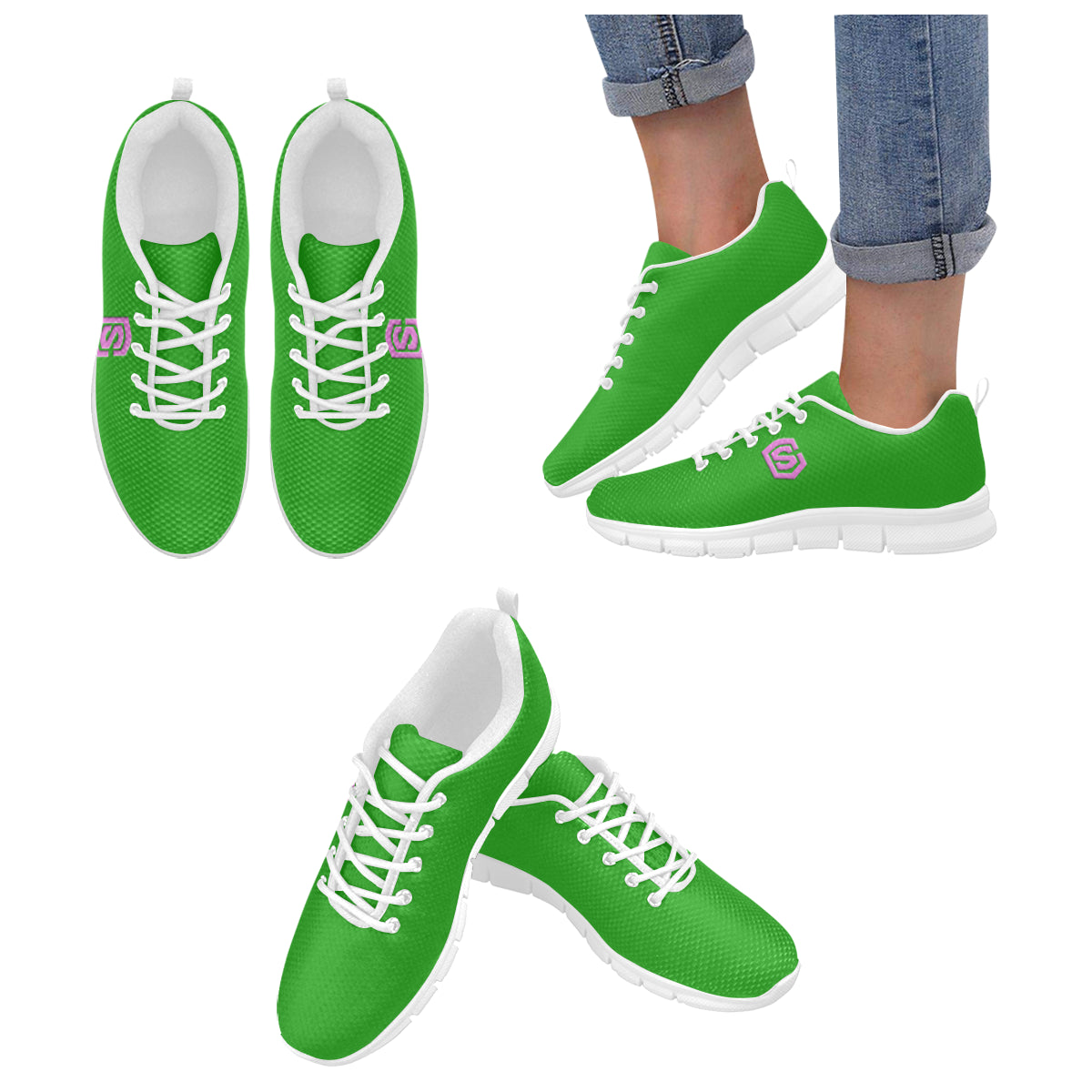 pink logo Women's Breathable Running Shoes (Model 055)
