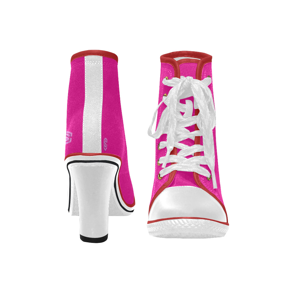 pink logo Women's Lace Up Chunky Heel Ankle Booties (Model 054)