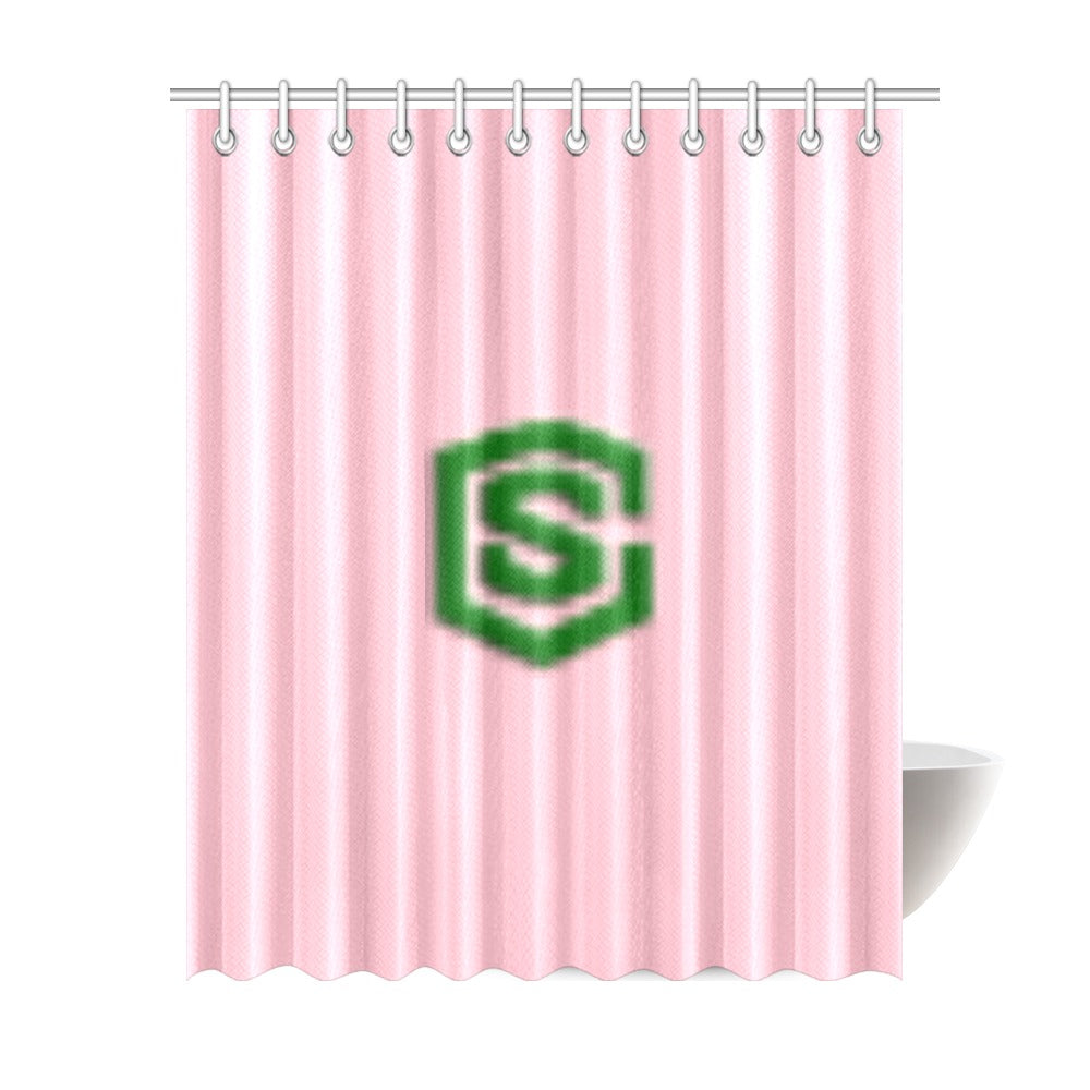 Pink Shower Curtain 69"x84" with Green Logo Shower Curtain 69"x84"