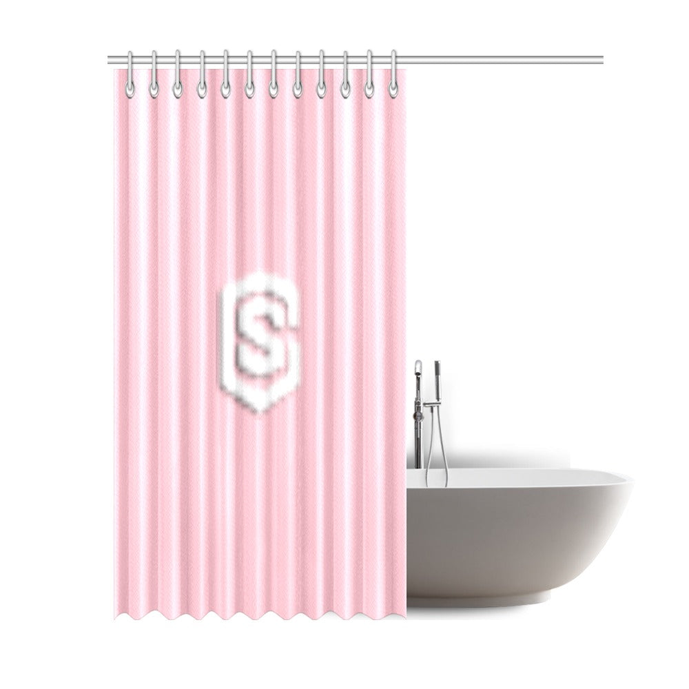 Pink Shower Curtain 69"x84" with White Logo Shower Curtain 69"x84"