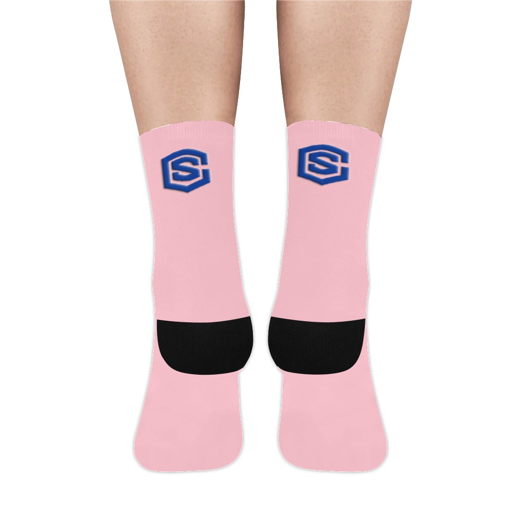 Pink Sublimated Crew Socks (Made In USA) with Blue Logo Sublimated Crew Socks (Made In USA)