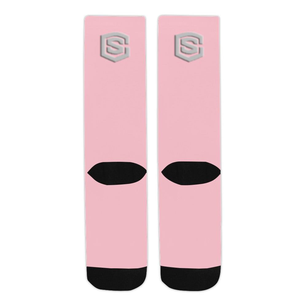 Pink Sublimated Crew Socks (Made In USA) with Silver Logo Sublimated Crew Socks (Made In USA)