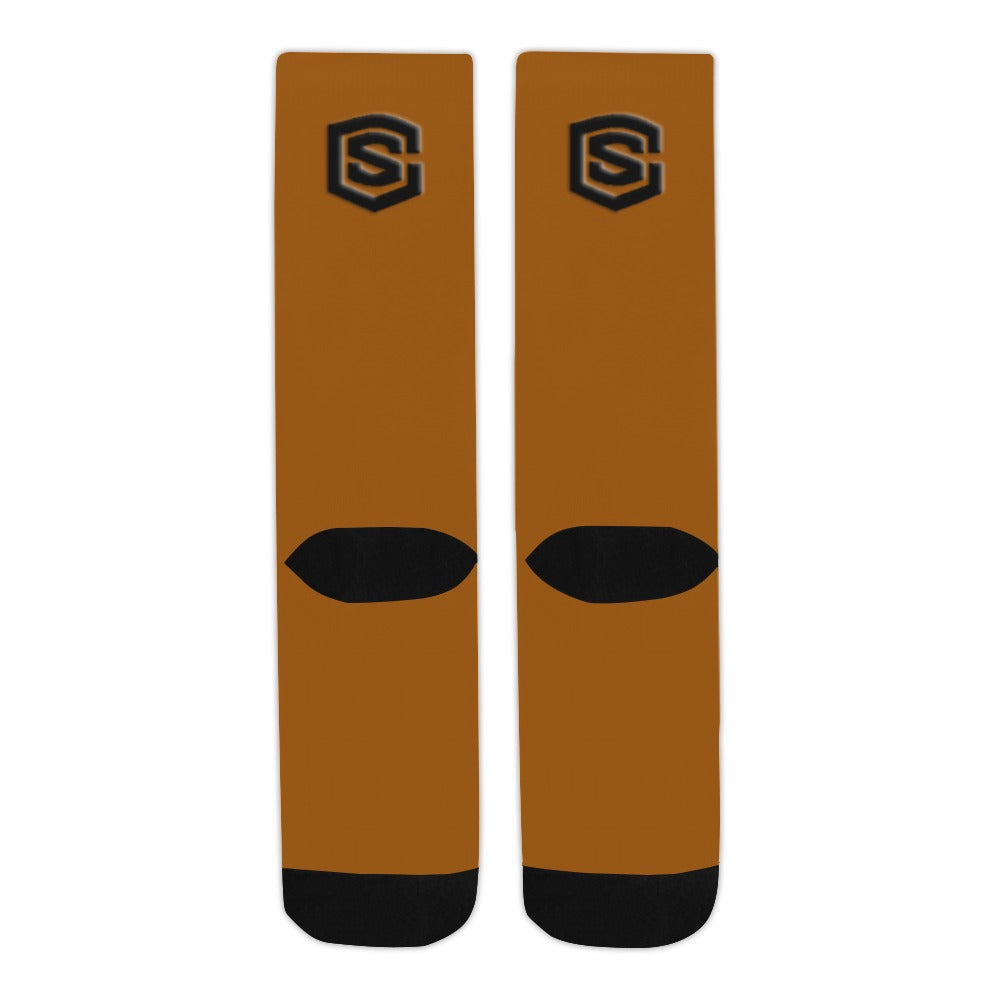 Purple Sublimated Crew Socks (Made In USA) with Black Logo Sublimated Crew Socks (Made In USA)