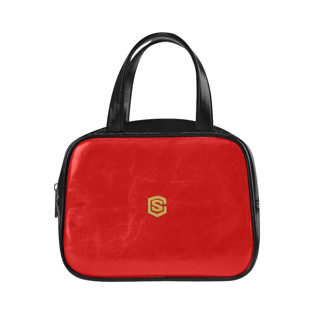 RED LEATHER TOP HANDLE HANDBAG gold logo Leather Top Handle Handbag (Model 1662)