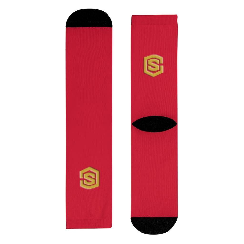 These sublimation crew socks take your designs to the next level. They are made of 70% polyester, 25% cotton, 5% elastane/spandex for style and easy customization. Their polyester exterior and cotton interior are added for both superb comfort and printability. Sublimation socks are known for their vibrant sublimation colors and have a great amount of stretch and durable print quality.