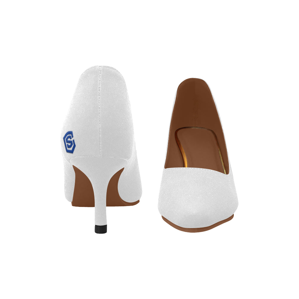 SILVER Women's Pointed Toe Low Heel Pumps blue log Women's Pointed Toe Low Heel Pumps (Model 053)