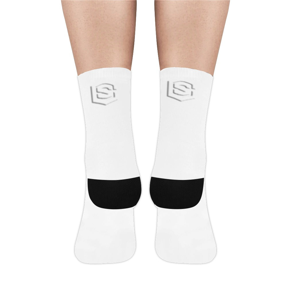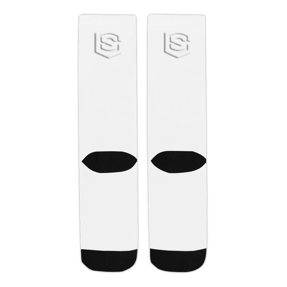 White Sublimated Crew Socks (Made In USA) with White Logo Sublimated Crew Socks (Made In USA)