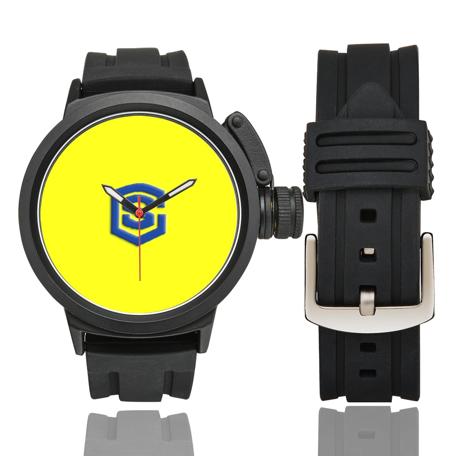 YELLOW MEN SPORT WATCH BLUE LOGO Men's Sport Watch (Model 309)